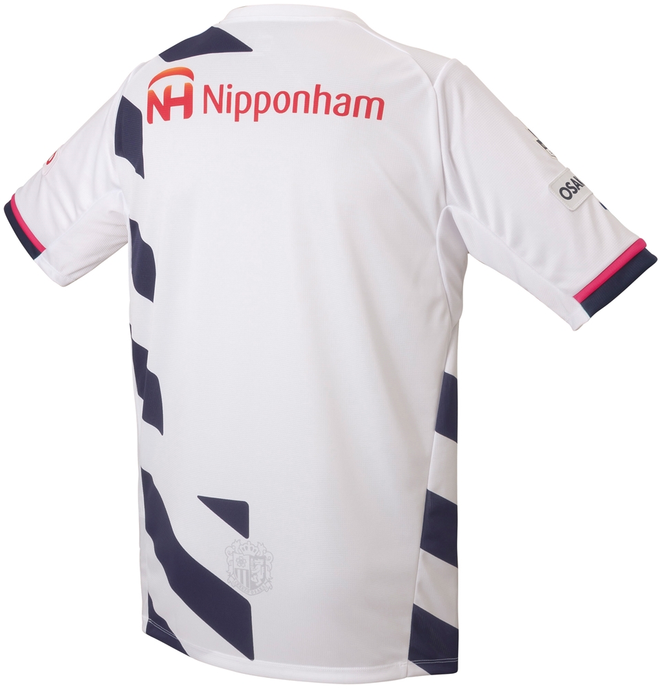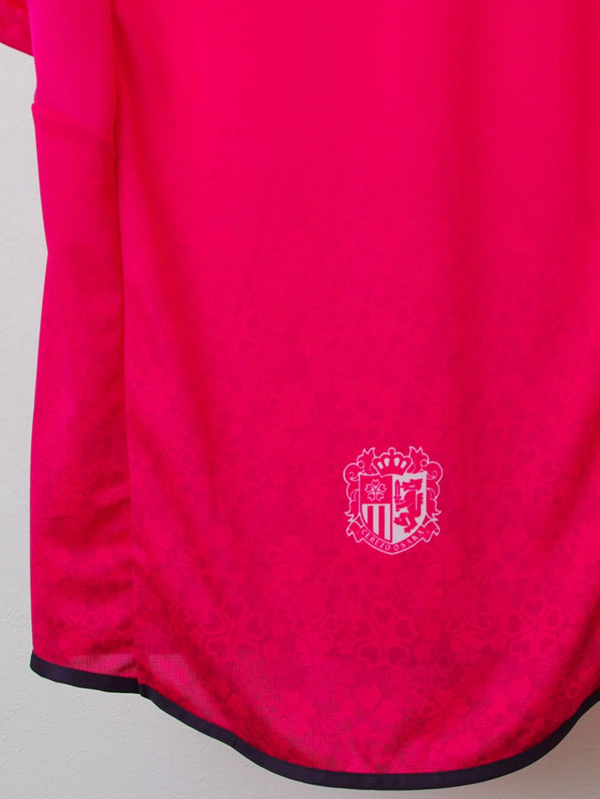 ユニフォーム下部に透かしで桜柄のグラデーション。背面にはさらにクラブエンブレムが入れられている。