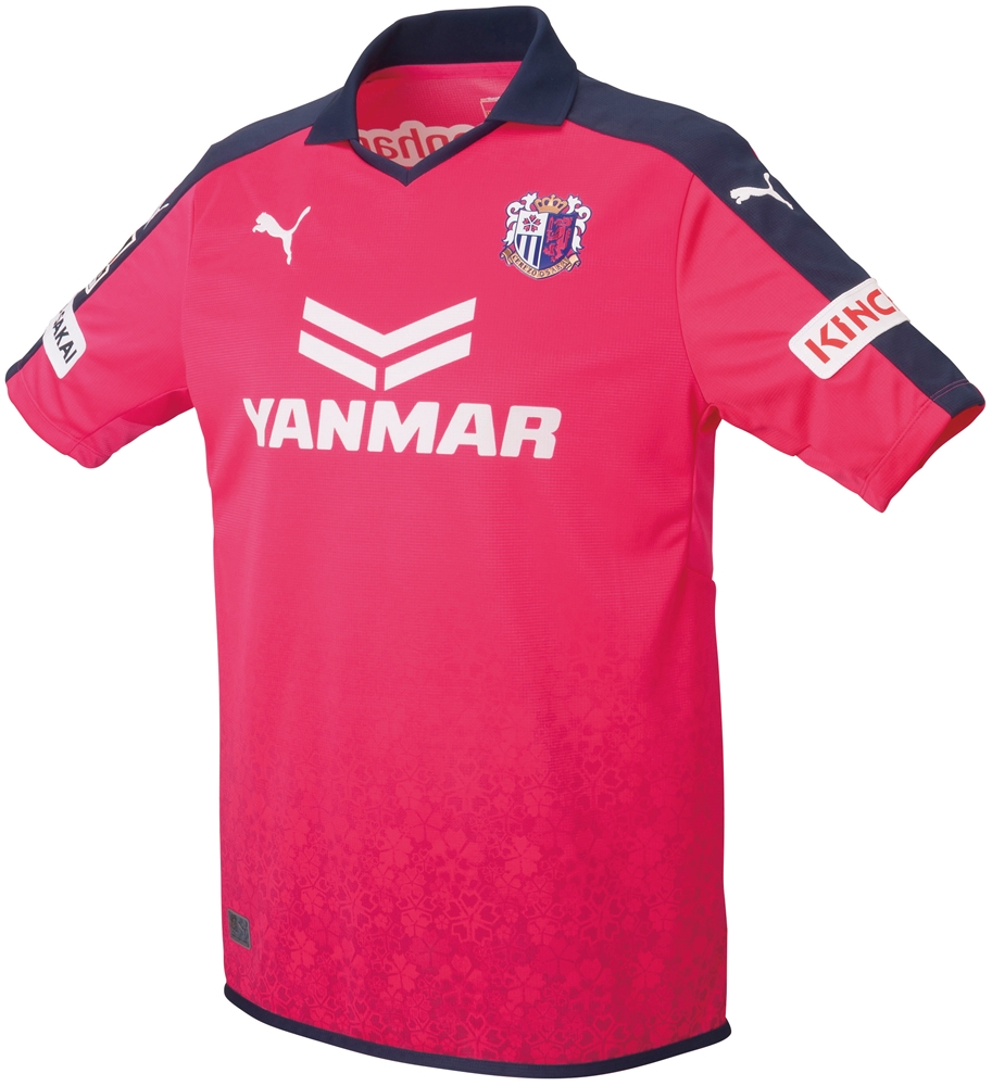 新たにプーマによってデザインされた伝統のピンクのホーム(1st)は、襟付きのシンプルなデザインを採用。クラシカルなサッカーらしいフォルムは 川崎フロンターレの2015ユニフォームと同じテンプレートである。