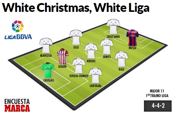 25日、『Marca』は同サイトのユーザーの投票による2014-2015シーズのリーガここまでのベストイレブンを発表した。