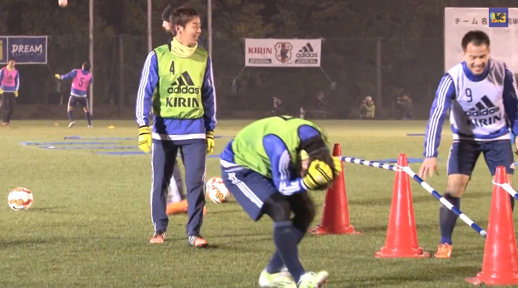 初日の練習には、主要リーグで唯一年末年始に試合が組まれているイングランド・プレミアリーグ、サウサンプトンに所属する吉田麻也を除いた22名が参加。アギーレ体制になってから初招集の清武弘嗣も久々にサムライブルーのウェアに袖を通した。