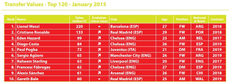 いまやプレミアNo.1プレイヤーといえるアザールがトップ2に迫ろうかという勢いを見せている。そして、このトップ10の後にネイマール(82億円)、ディ・マリア(80億円)といった面子が続く。