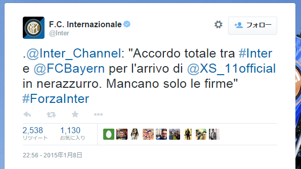 契約については6か月のローンとなっているが、『Bild』によればシーズン終了後に1800万ユーロ(およそ26億円)を支払うことによって完全移籍に切り替えられるオプションが付随しているとのこと。