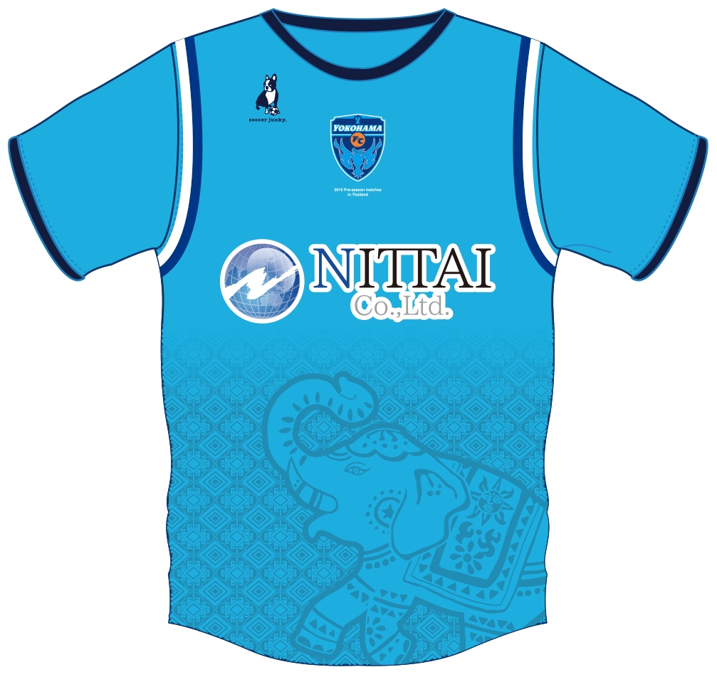タイを代表する動物「象」の透かしが入った、見るからにタイ、これぞタイといった感じのプレシーズンマッチ用ユニフォーム。