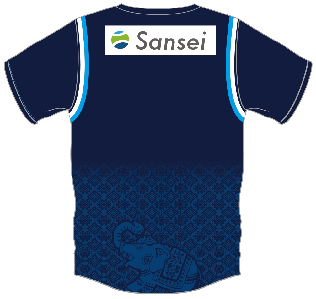ユニフォームスポンサーは、胸に建設機械リースの「NITTAI」、背中も建設会社の「Sansei」という東南アジア向けの特別仕様。