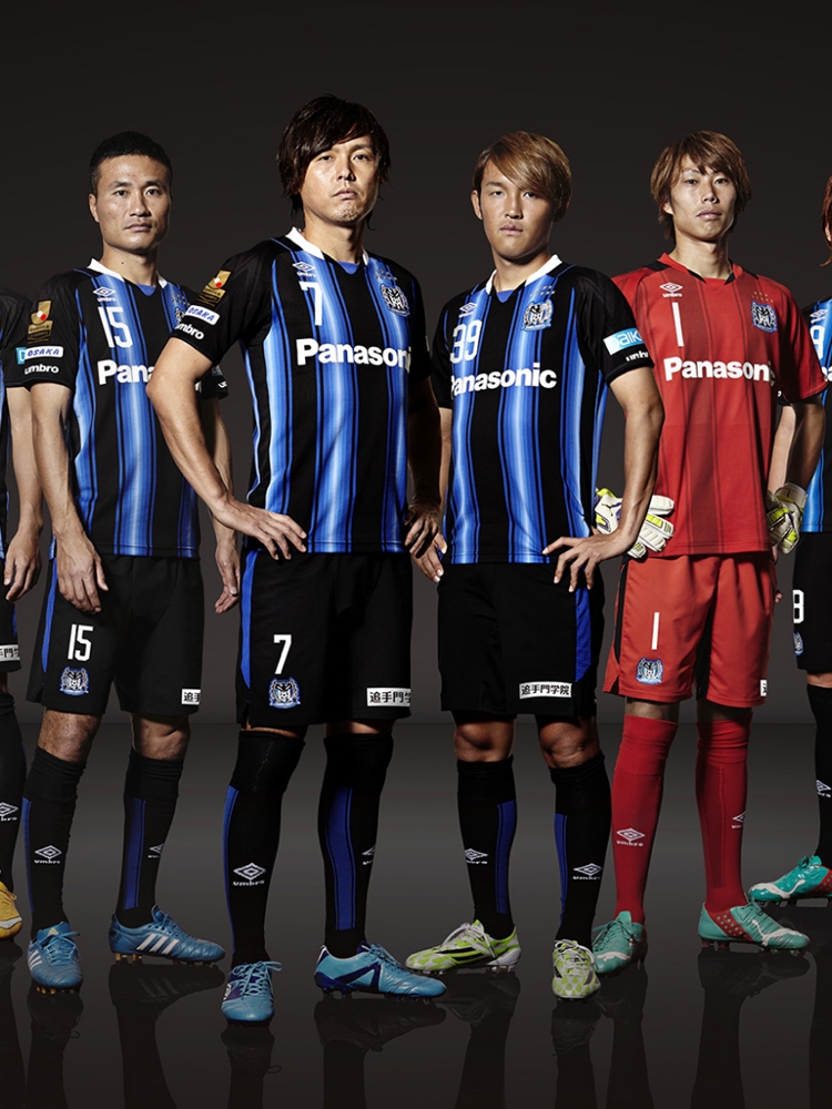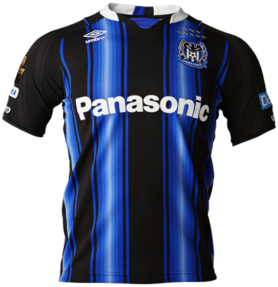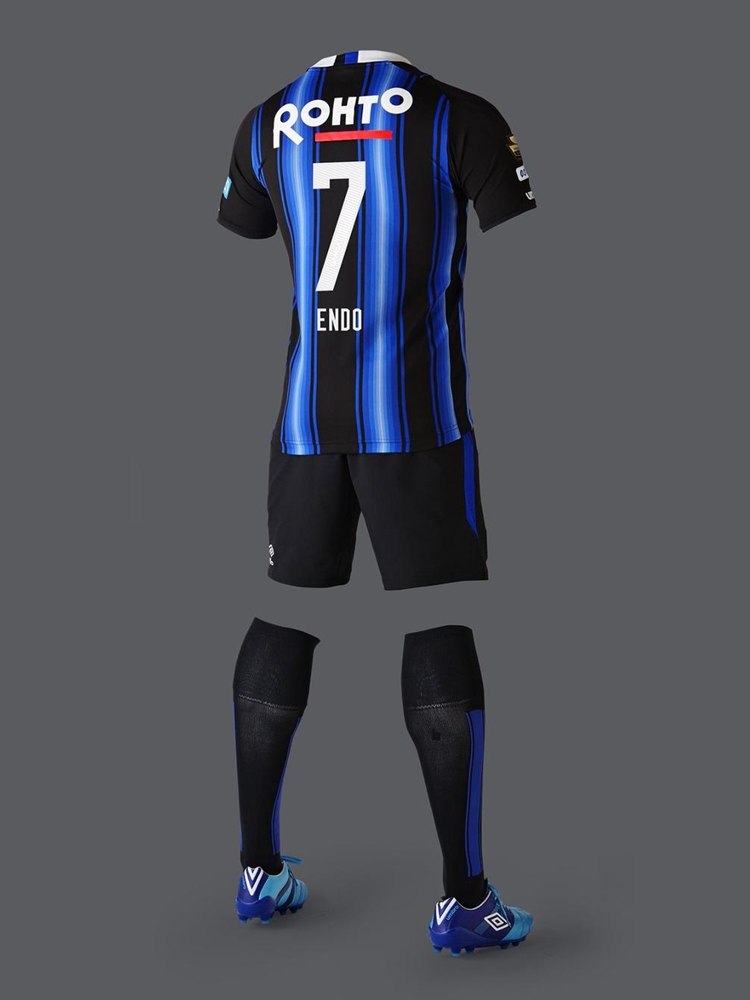 ホームは、ガンバの特徴でもある「スピード感のあるパスサッカー」を表現すべく、チームカラーの青を用いた、稲妻を想起させるグラデーションストライプを採用。