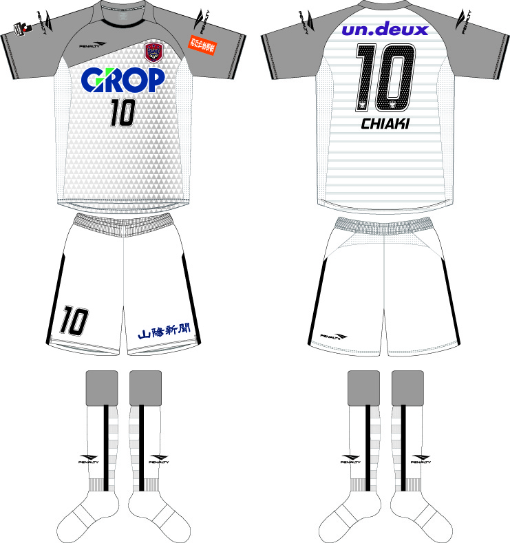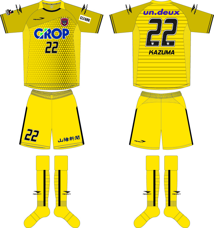 ここ2年黒だったアウェイは黄色に。いずれもテンプレートはFP用ホームと共通の「魔除け」「厄除け」デザインだ。