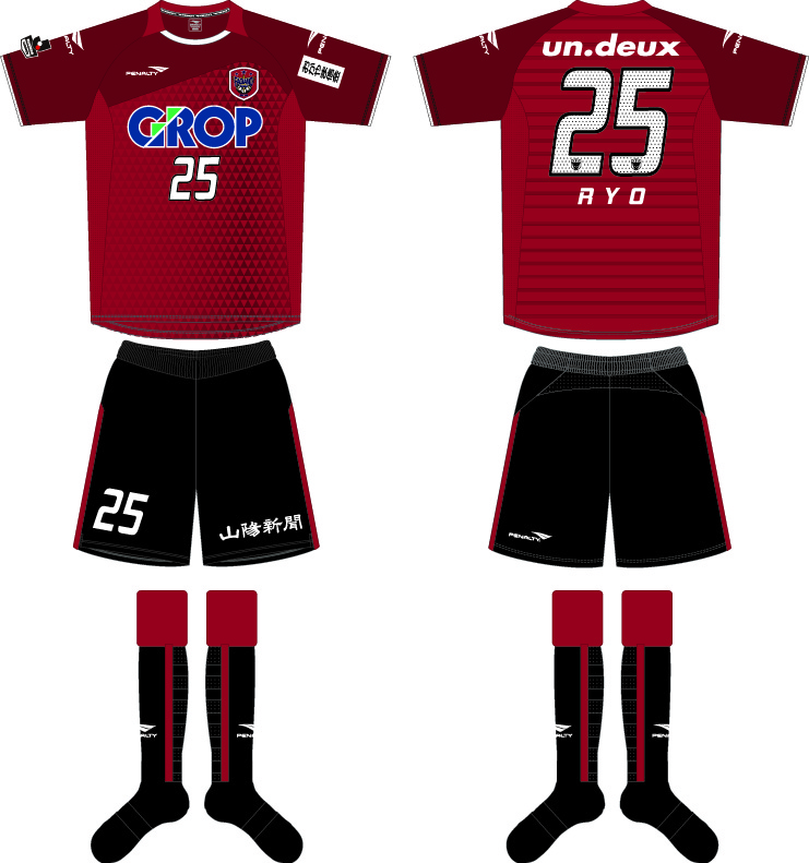 ホームは引き続きチームカラーの赤を基調にした、濃淡のカラーコンビネーションを採用。上昇をイメージしたというトライアングルパターンは、日本古来より「魔除け」「厄除け」の意味でお守りや着物などに使われてきた「鱗文様(うろこもんよう)」でもあり、選手を怪我などから守るという意味も込められている。