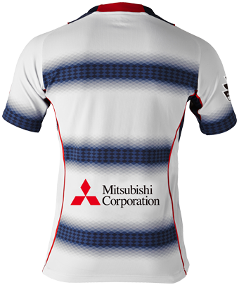 昨年発表済みのホーム(1st)に続くアウェイは、なんと白をベースにしたボーダー柄。紺のボーダーにはグラデーションプリントが取り入れられており、アクセントとして赤を配置。従来のイメージを一新したスタイリッシュなデザインに仕上がっている。