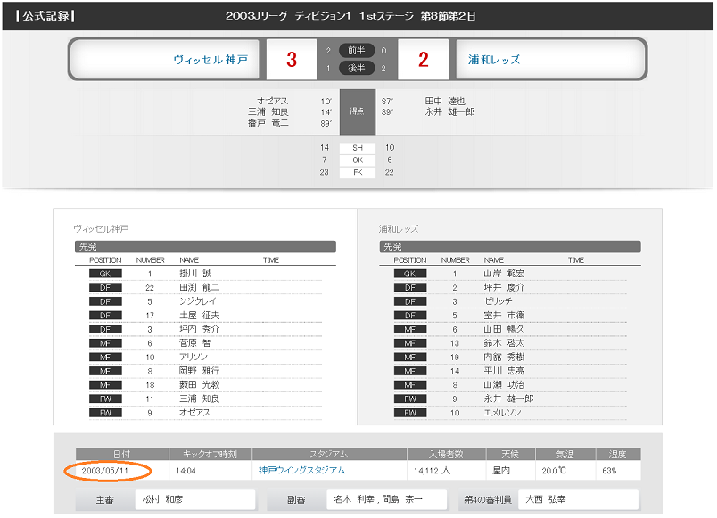 ちなみに、三浦はこの直後2002年から2003年であると修正している。実際に調べてみると・・・