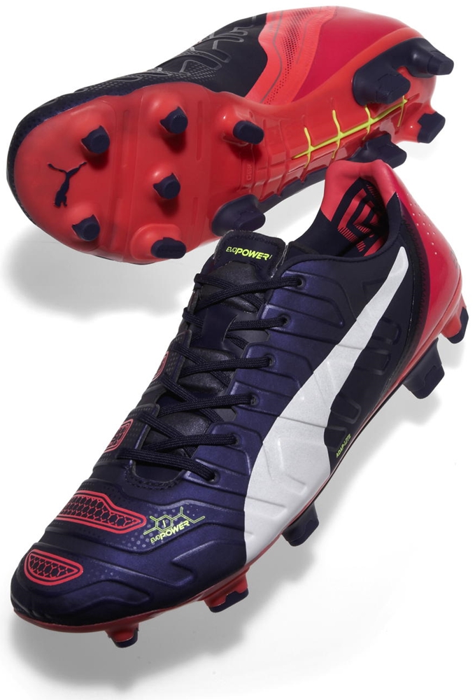 瞬発力系の「エヴォスピード」、フィット系の「キング」と並ぶ、Pumaのサッカースパイク3サイロのうちの一つ、「エヴォパワー」。
