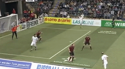 ヘルタ・ベルリン、ウニオン・ベルリン、アイントラハト・フランクフルト、レヴァークーゼン、ブレーメン、そしてスパルタ・プラハの6チームが戦ったインドアサッカーの大会ではこんな素晴らしいゴールが生まれた。
