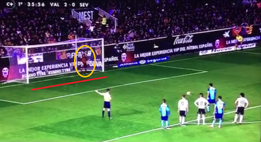 (バッカから見て)あからさまに右側に寄っている。この直後、バッカが助走を始めるとジエゴ・アウヴィスは中央に動くなど特有の動きを見せた。