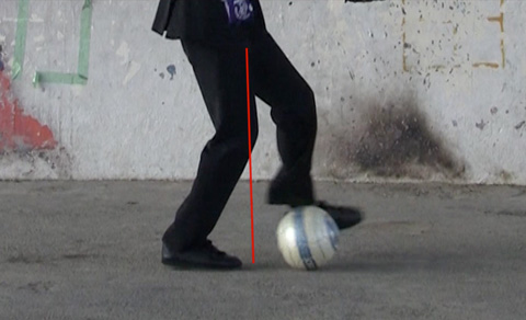 ボールを引いた足は体の真下ではなく、重心より後ろに降ろしましょう。
