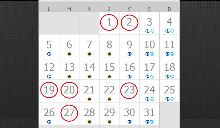 そう、実はこの1月、スペインでは1ヵ月間のほとんどの日付けで何かしらの試合が開催されていたのだ。分かりやすいように、試合が行われなかった日付けを赤で丸く囲ってみよう。