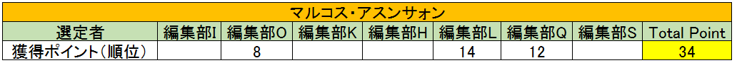 【6位】マルコス・アスンサォン(獲得ポイント:34pts)