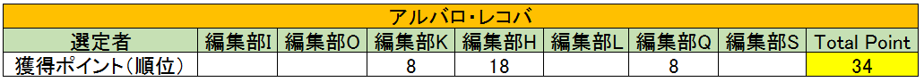 【6位】アルバロ・レコバ(獲得ポイント:34pts)