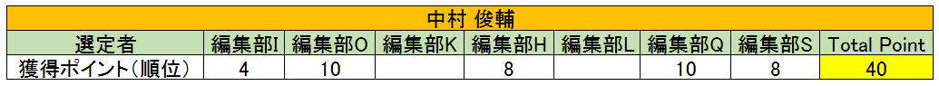 【5位】中村 俊輔(獲得ポイント:40pts)