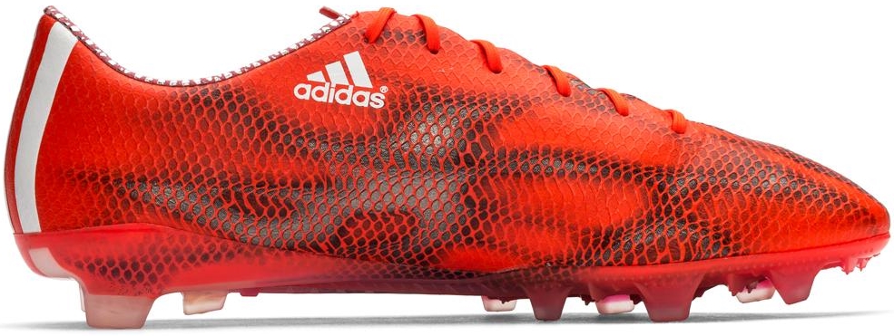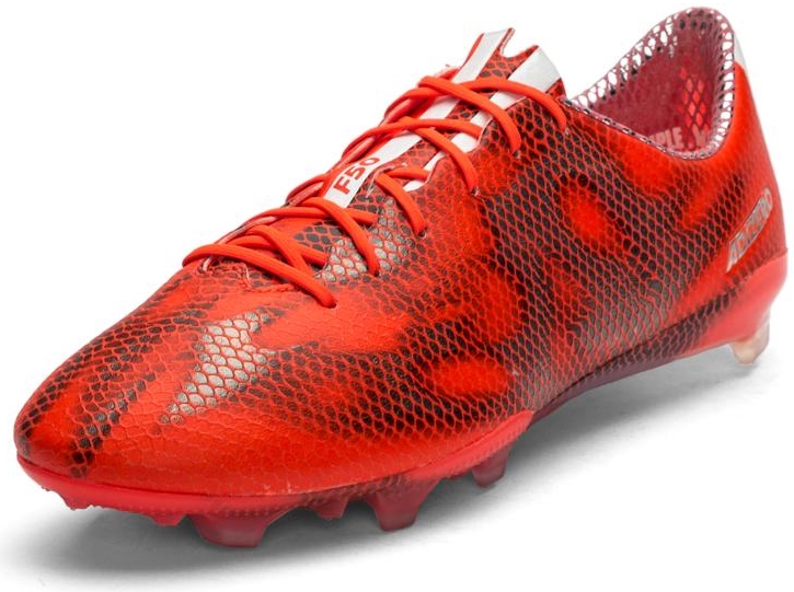 adidasの“スリーストライプス"はヒール部分で抜群の存在感を発揮。シュータンにも「F50」の文字とともに三本のラインが入れられている。