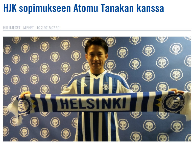 元アルビレックス新潟のMF田中亜土夢はHJKヘルシンキへ移籍することが決定した。HJK、アルビレックス両公式サイトで伝えている。
