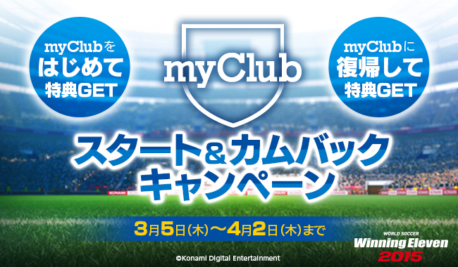 そして、お久しぶり(最終ログインが2015年1月31日23:59まで)の人はキャンペーン期間中に『myClub』にログインすると、選手・監督の獲得などに使用できるゲーム内ポイントGPが20,000ポイント貰えるとのこと。