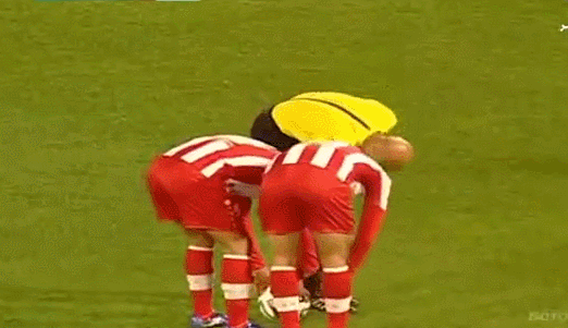 ピッチに吹き付けられたバニシング・スプレーを手で消して、移動させるという行為はまさに仰天だった。