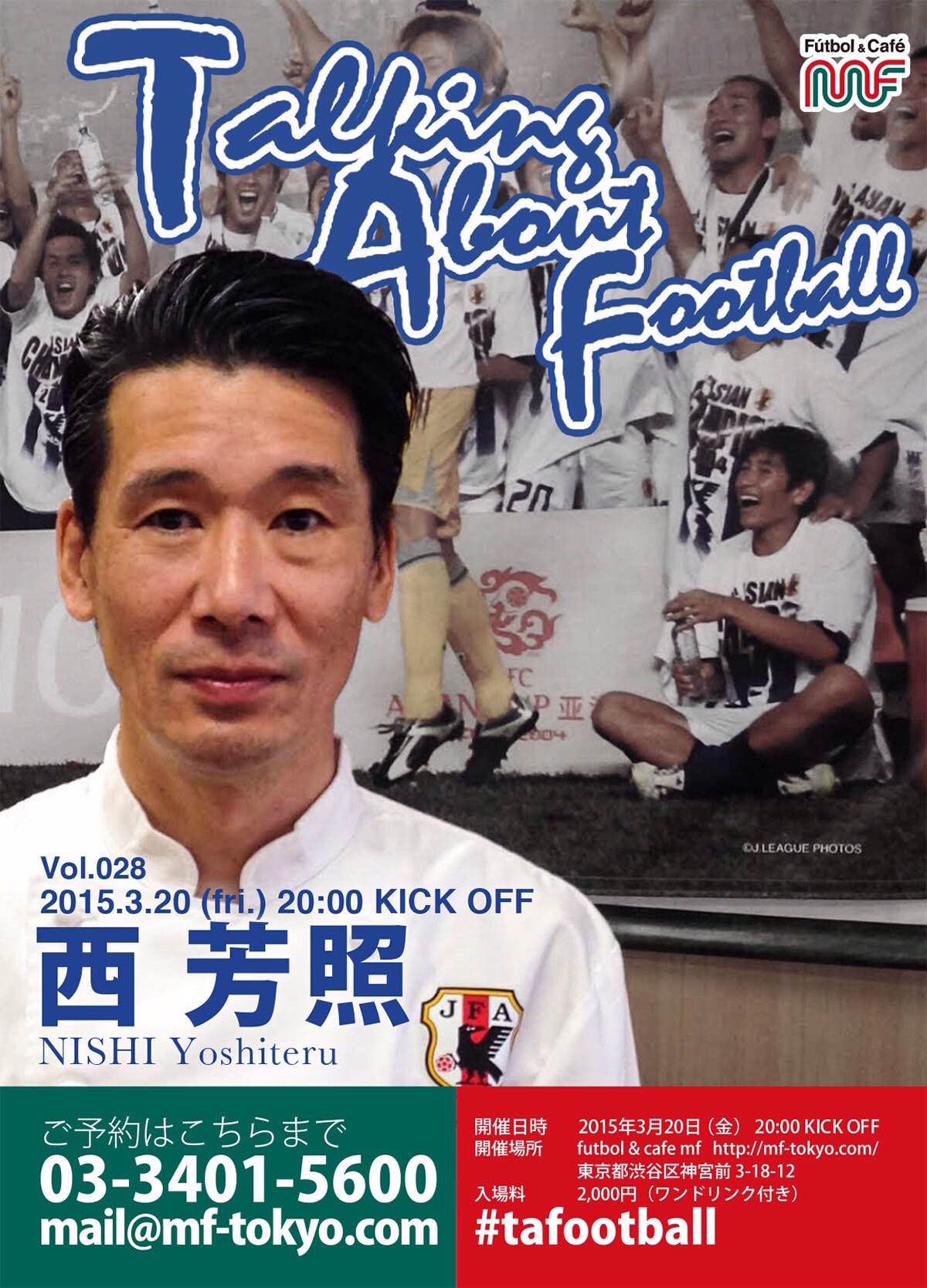 3月20日(金)に原宿のサッカー&カフェ「mf」で行われるトークイベント、『Talking About Football』の第28回についてご紹介します。