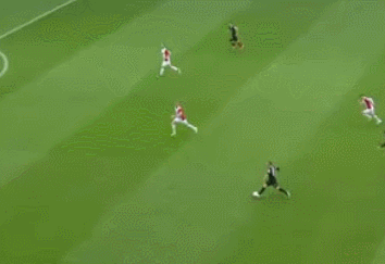 前半32分、右寄りの位置でパスを受けた岡崎は浮かせた(浮いてしまった?)トラップから見事なシュートでゴールにたたき込む!