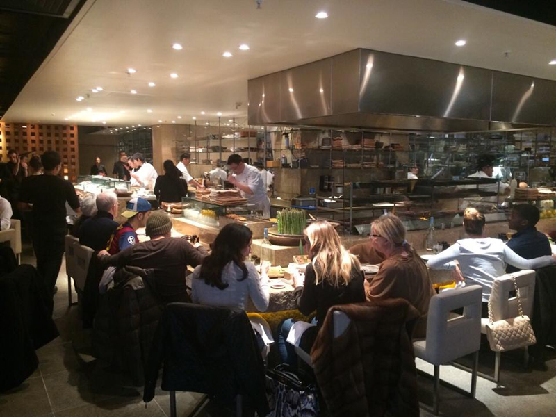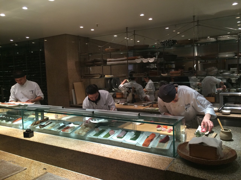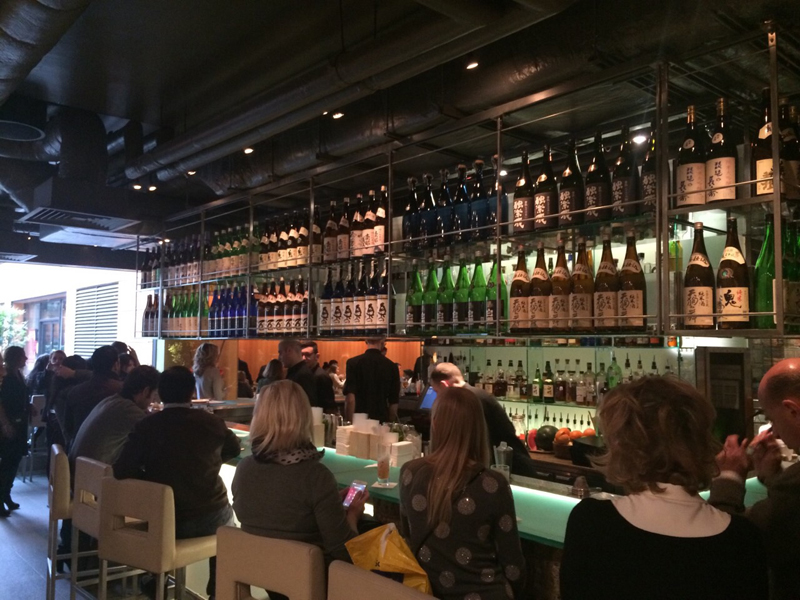 新鮮なお刺身を切り裁く日本人らしき板前が何人かと、種類豊富な日本酒を振舞うローカルスタッフ。日本酒の升酒を注文したら、ワインの時のようにテイスティングを求められたのが面白くて印象的でしたね。