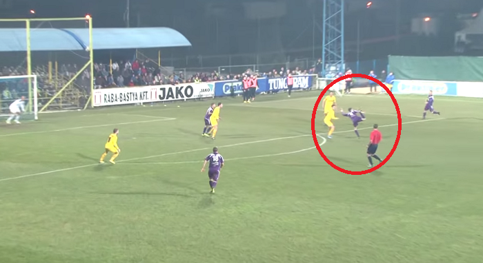 ベーケーシュチャバに所属するボトンド ビルタランは右サイドからのクロスに思わず反応し、これが山なりの弧を描きながらゴールインしたのだ。