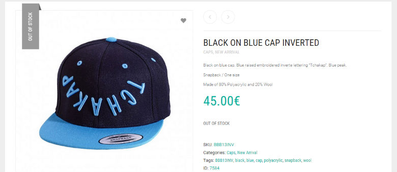 人気のある商品は品薄状態、例えば濃いブルーのキャップは売り切れになっていた。