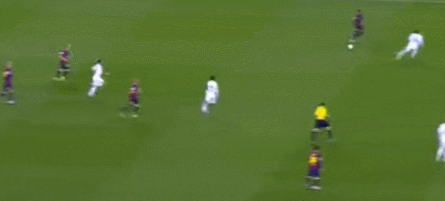 自陣内左サイドでボールを受けると、そこから相手ゴールに突進。マドリーDF陣を寄せ付けないドリブルで1人グングン突き進み、ゴール前まで到達してシュート!もしゴールになっていれば、後世にまで語り継がれるようなものになっていたかもしれない…。とはいえ、スペースがあると止められないその高度なドリブルスキルを改めて見せつけた瞬間であった。