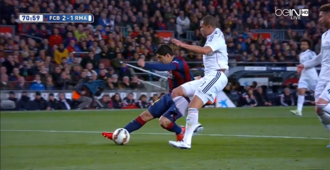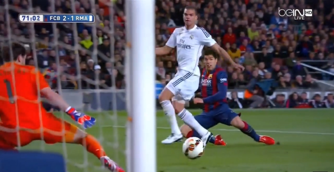 バルサがセットプレーからジェレミ・マテューのゴールで先制するも、レアル・マドリーもエースのクリスティアーノ・ロナウドが決めて同点。そのまま1-1で折り返した試合、決勝点を奪ったのは昨季プレミアリーグ得点王の輝きを取り戻したウルグアイ代表FW、ルイス・スアレスであった。