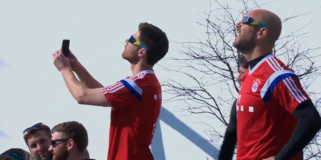選手たちも例のメガネを使って神秘的な天体ショーを楽しんだようだ。