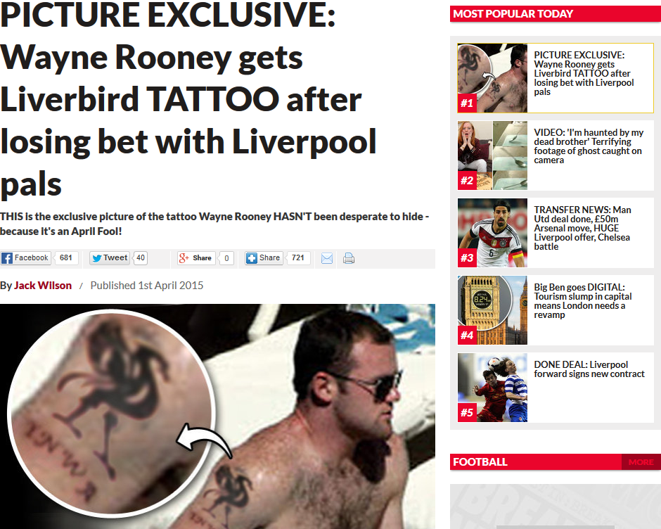 こちらは『Daily Star』のスクープ。なんとウェイン・ルーニーがリヴァプールの象徴「ライバー・バード」のタトゥーを入れたようだ。