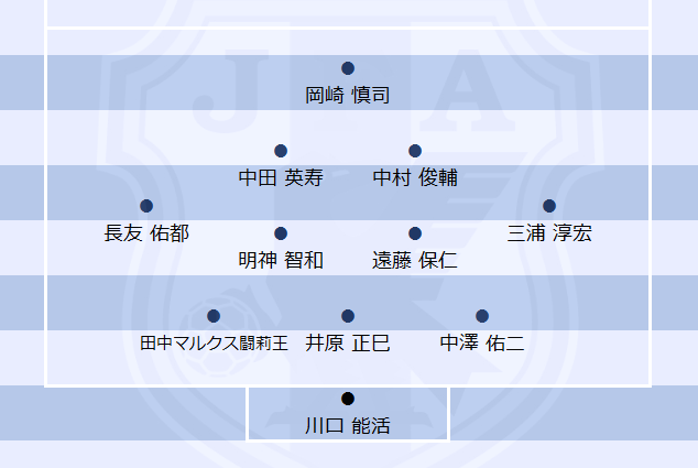 中田×中村という日本サッカー史に残る司令塔を1トップの下に並べ、両サイドには爆発的な運動量を誇る長友と、“悪魔の右足"を持つ三浦淳を起用。そうした個性派を並べる上では、やはり“カユい所に手が届く"明神をチョイスしたい。