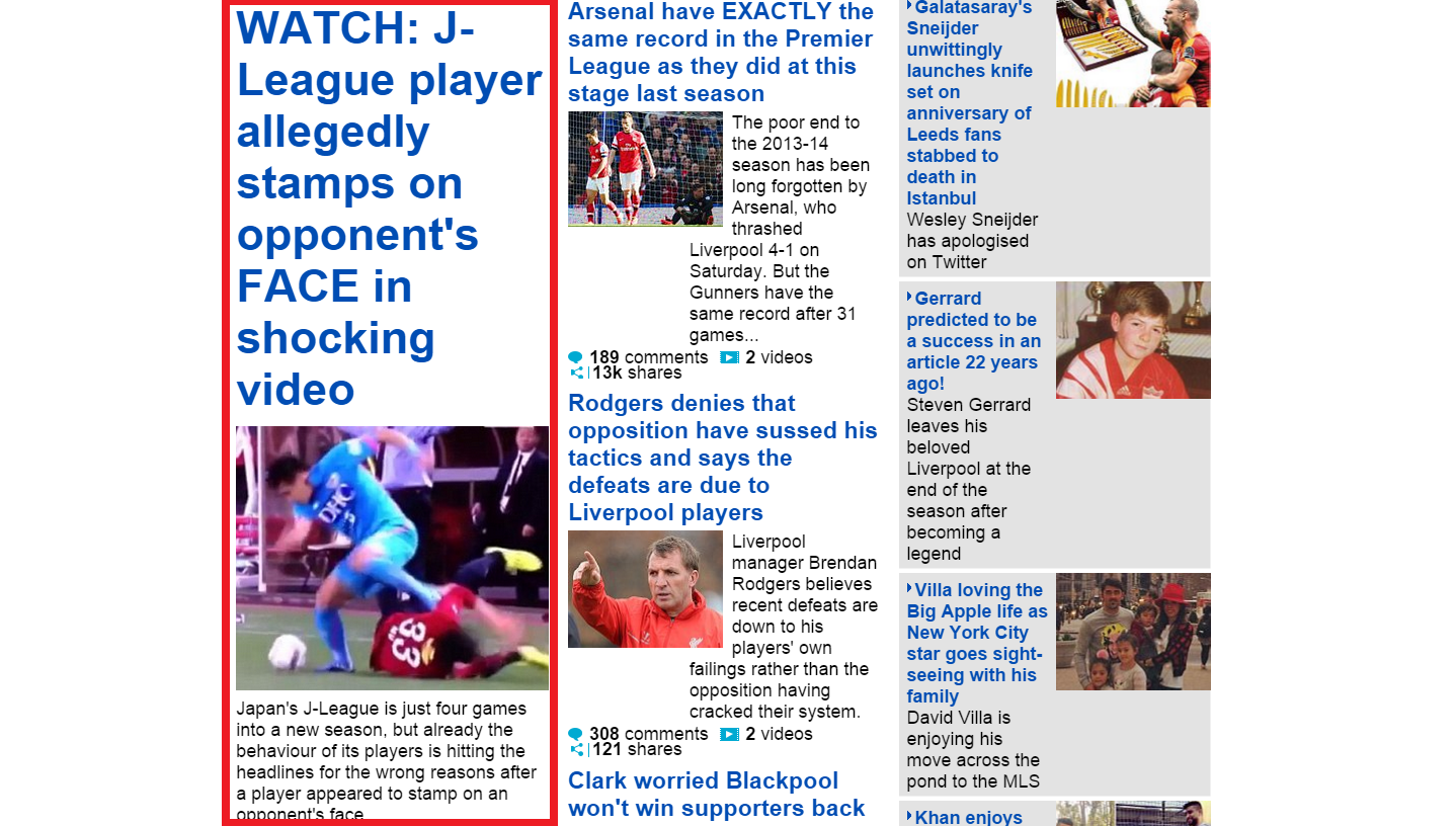 そんな中、今回のニュースは英国メディアでも伝えられていた。 英国『Mail Online』は「Jリーグの選手は、衝撃的な映像の中で相手選手の顔を踏む」とタイトルをつけた。