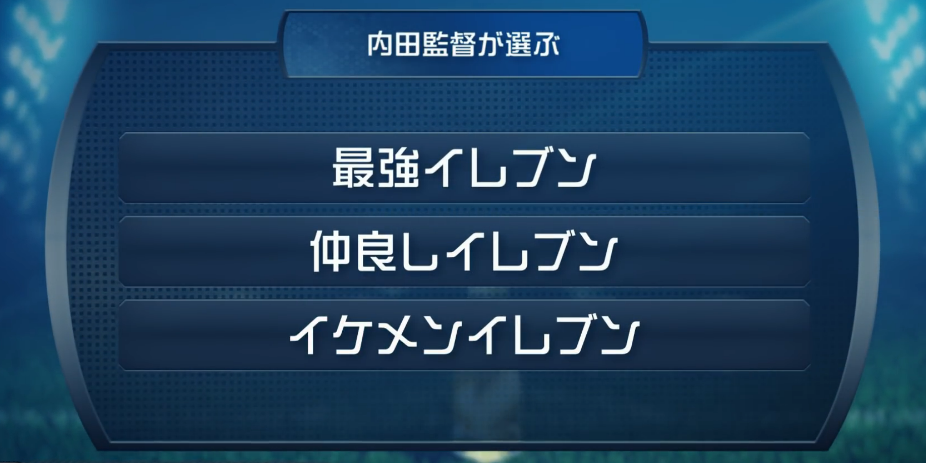 内田監督セレクション・クイズの答えともなる、内田選手が選んだ各チームのメンバーが公開され、「最強」「仲良し」「イケメン」の各イレブンに試合を挑むイベントが開催されます。勝利数に応じて、スター選手が獲得できるチケットなど豪華賞品を配布します。