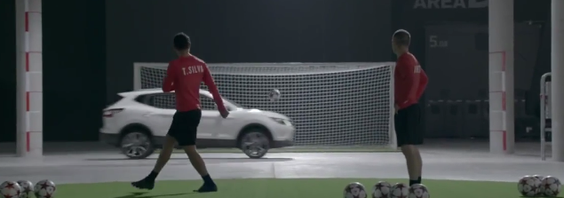 シウヴァの蹴ったボールは目の前を走り抜ける車の窓を通過!CGじゃなくて・・・!?。