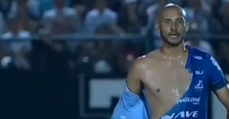フォズ・ド・イグアス戦に出場したメンデスは、セットプレーの際に相手選手と激しくやりあいユニフォームを引っ張られる。引っ張られた状態でメンデスは相手選手から離れるような動きをしており、ユニフォームはこの通り・・・。