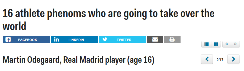 これから世界を獲るであろうという各スポーツ界の逸材たちがピックアップされており、そこにはレアル・マドリーに所属する16歳のノルウェー代表MF、マルティン・ウーデゴールの名前もあった。
