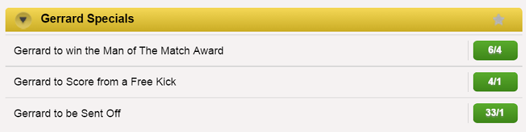 ブックメーカーの『CORAL』はこの試合に際し、"Gerrard Specials"と題しこんなベッティング内容を用意した。