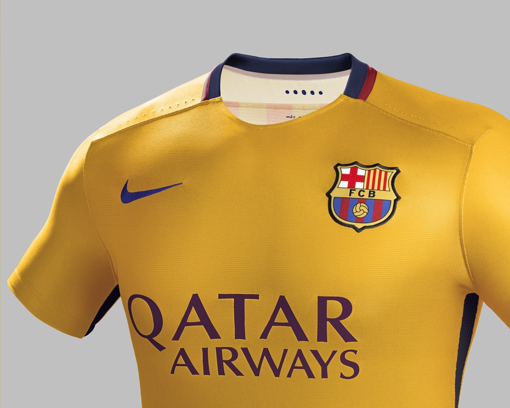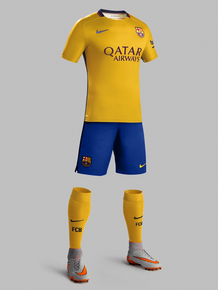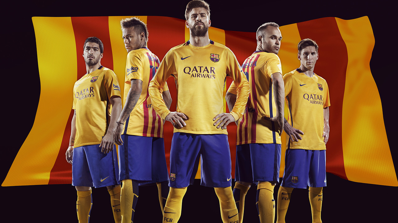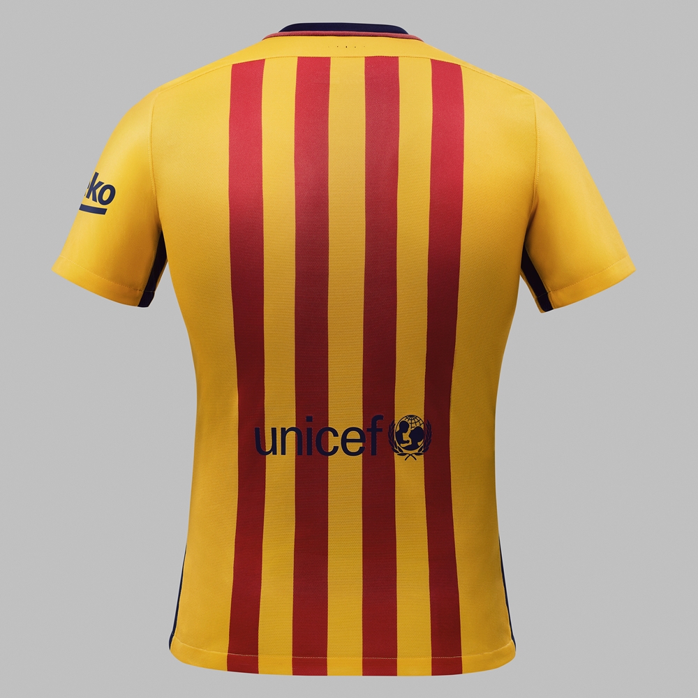 バルセロナの2015-16アウェイはこちらもリーク通り、カタルーニャ州の州旗「セニェーラ」の黄色と赤をベースにしたデザイン。