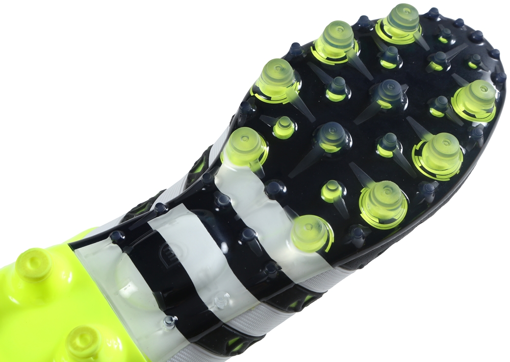 アウトソールは『ACE』の大きな特徴で、14本のメインスタッドと29本のサブスタッド、計43本の丸形スタッドにより、ボールおよびグラウンドとの接地面積を向上。ボールとグラウンドへの吸い付きやすさを高めることで、優れたボールコントロールと360°あらゆる方向への安定した動きに繋げている。