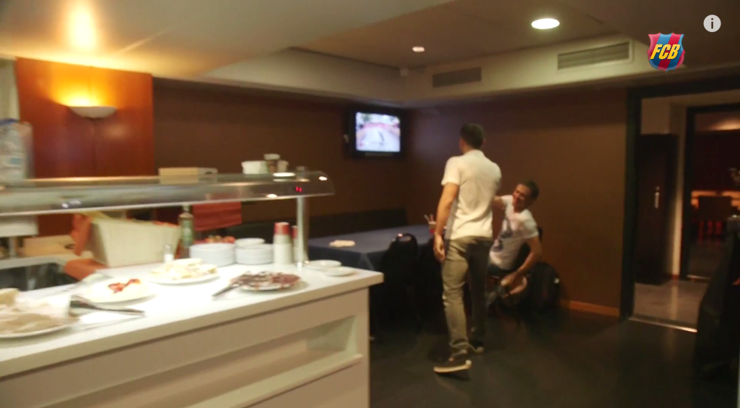 ちなみに食堂にいたのはルイス・エンリケ監督。ともにプレーもした45歳の若き指揮官のもと“有終の美”を飾るべく、チャビは2008-09シーズン以来となる3冠を目指す。