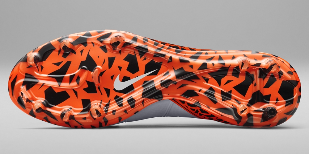 アッパーには、ハイパーヴェノムで導入されたメッシュ素材と薄いポリウレタンフィルムによるナイキスキンの進化版、ナイキスキン2.0を使用。旧モデルでは均一な“くぼみ”を付けたアッパーが大きな特徴だったが、今作はボールタッチの向上や屈曲性を高めるため前足部を中心に科学的な根拠に基づく幾何学模様の切れ込みが入れられている。
