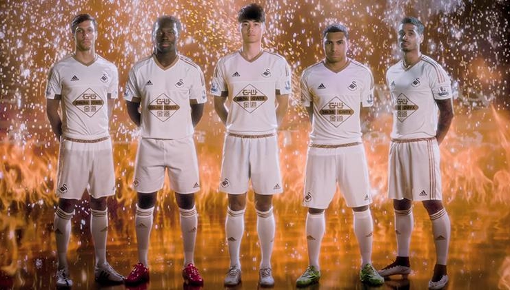 スウォンジーは6日、2015-16シーズンに向けた新ユニフォームを発表。彼らといえば「スワンズ」の愛称に象徴される白のホームが印象的だが、ニューモデルはやや赤みがかったカラーリングを採用した。