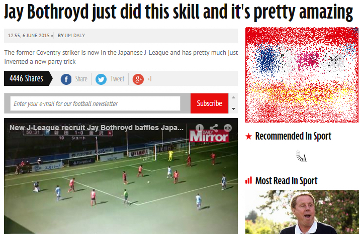 そして、「いま彼はJリーグのジュビロ磐田でプレーしており、週末にとっても驚くべきスキルをやった」、「このプレーがこれまであったかどうか定かでないので、ジェイは自分が発明したと主張するかもしれない。これを“'the Jay Bothroyd”と呼ぼう」などという調子で伝えていた。