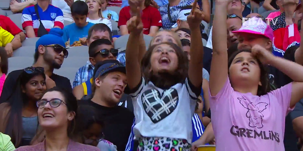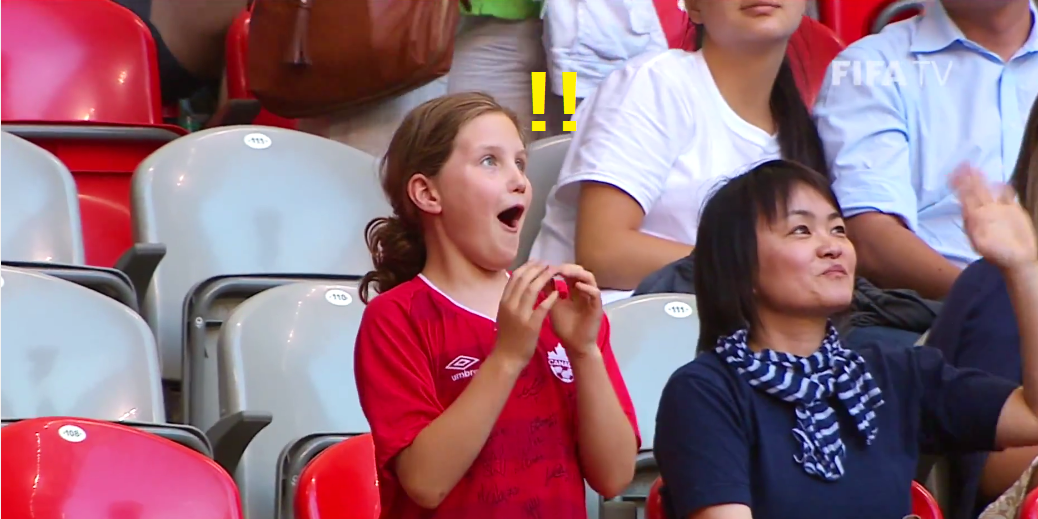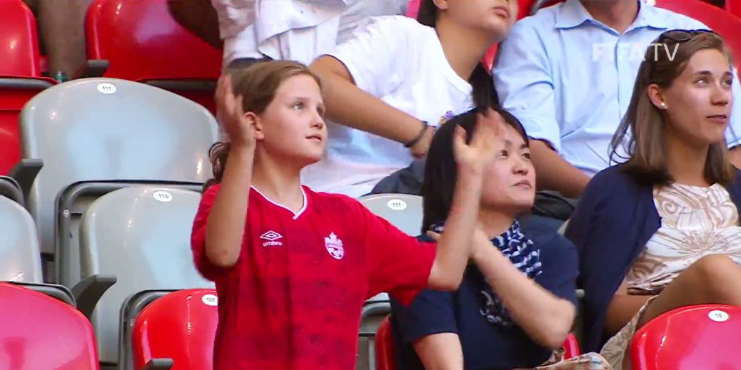 そして注目は3番目に登場したこのカナダファンの女の子。音楽に合わせて体を揺らしながら手拍子をしていたが、