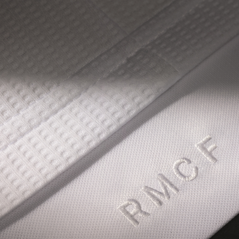 裾部分にはクラブ名の「Real Madrid Club de Fútbol」を表す「RMCF」の文字が入れられている。