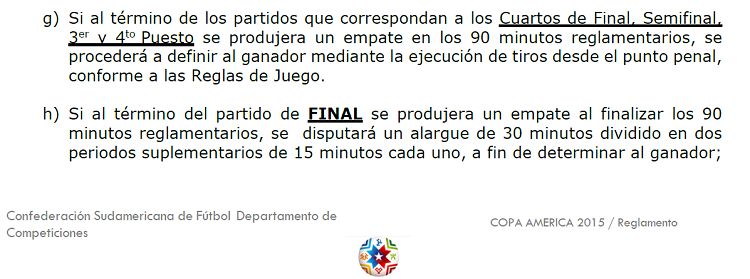 そんなコパ・アメリカ2015ももうすぐ決勝トーナメント。12チーム中8チームが戦うことになるのだが、実はこの決勝ラウンドではちょっと変わったレギュレーションが適用されるのをご存知だろうか?